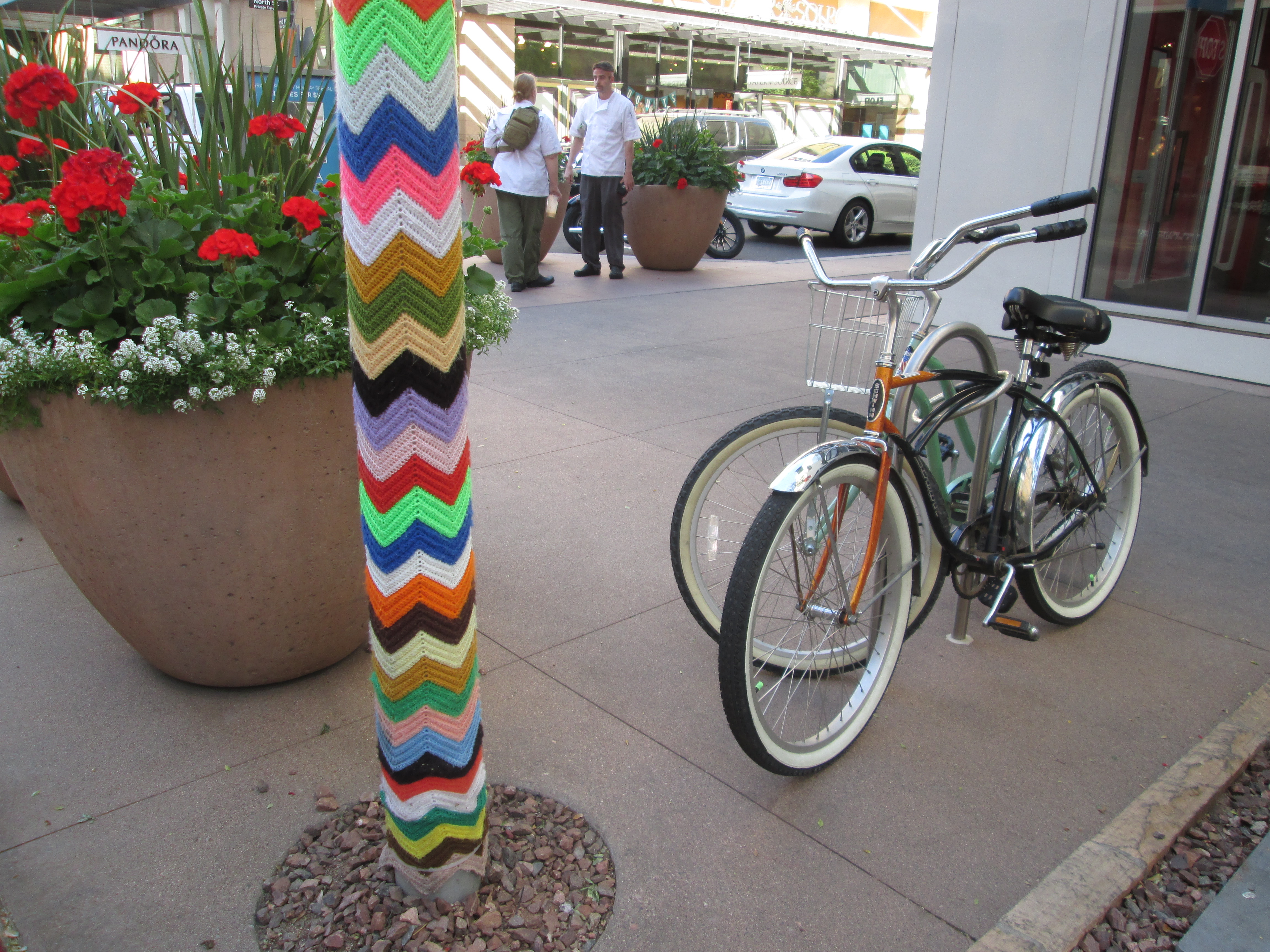 The majority of people I saw riding in Phoenix rode department store bikes, low-end mountain bikes, or in lesser words: nothing fancy. We only saw one group of white, spandex-clad, racing cyclists out in a less-dense area of town. I also noticed a few out in Scottsdale but their numbers were easily squashed by bicyclists in loose-fitting clothes tooling around a mall parking lot.